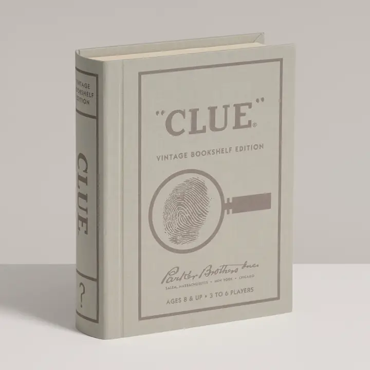 This Vintage Bookshelf Edition of Clue was inspired by the graphics of the 1949 game. The designers have created an elegant storage method that allows you to store this game on your bookshelf among the classics. The addition of premium game components create a classic to be enjoyed by crime solvers for years to come.